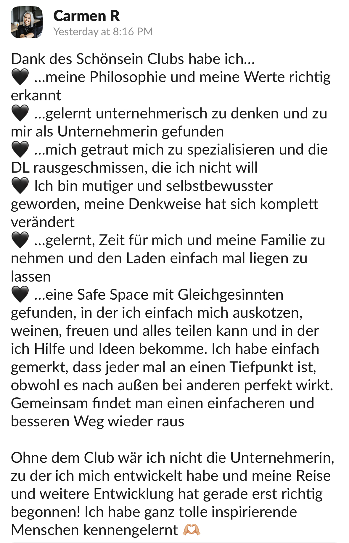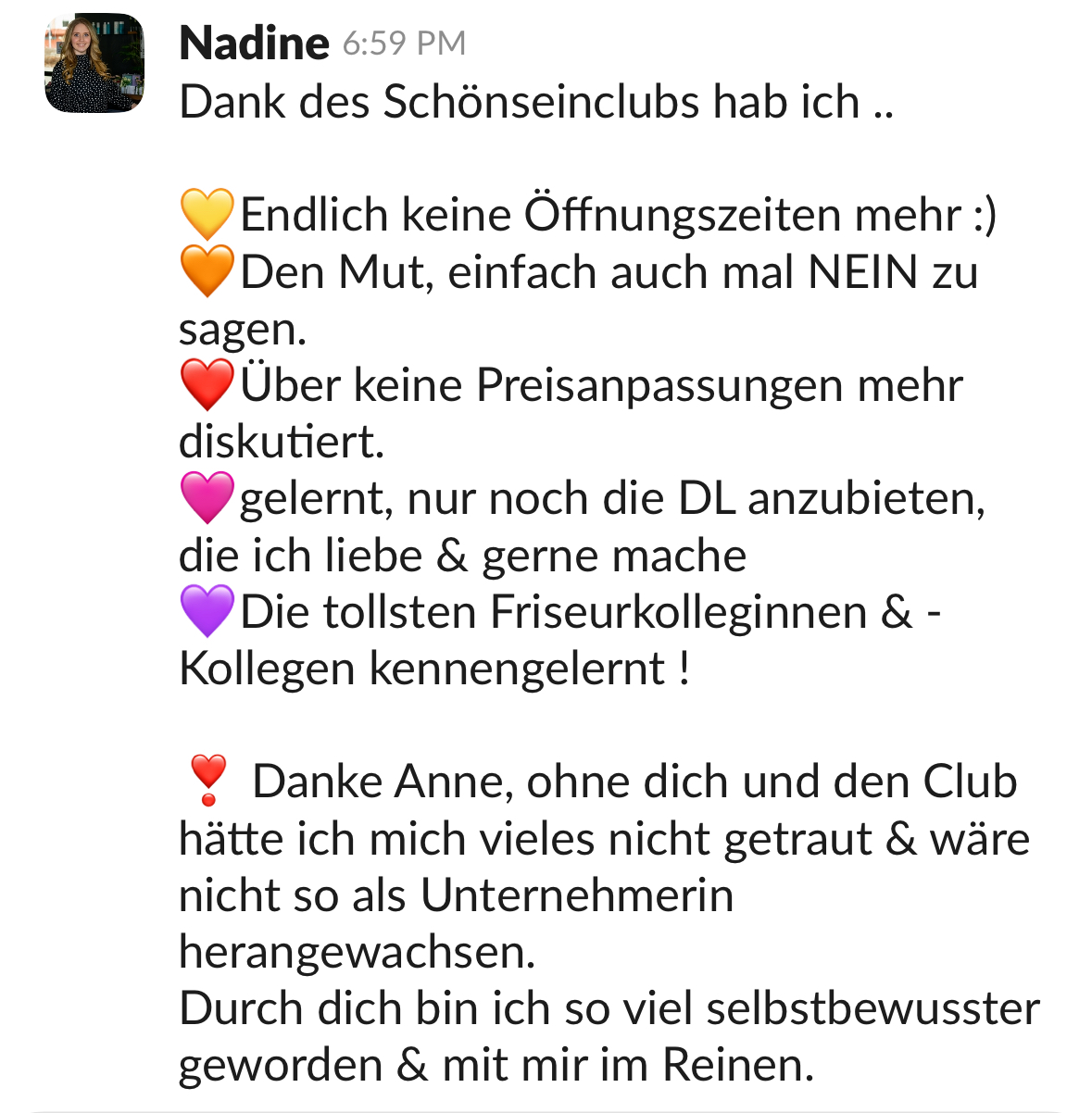 Dass du stolz bist auf deinen Salon – und auf dich.
